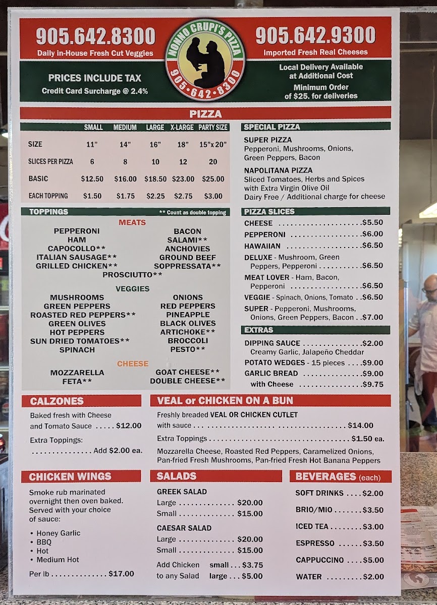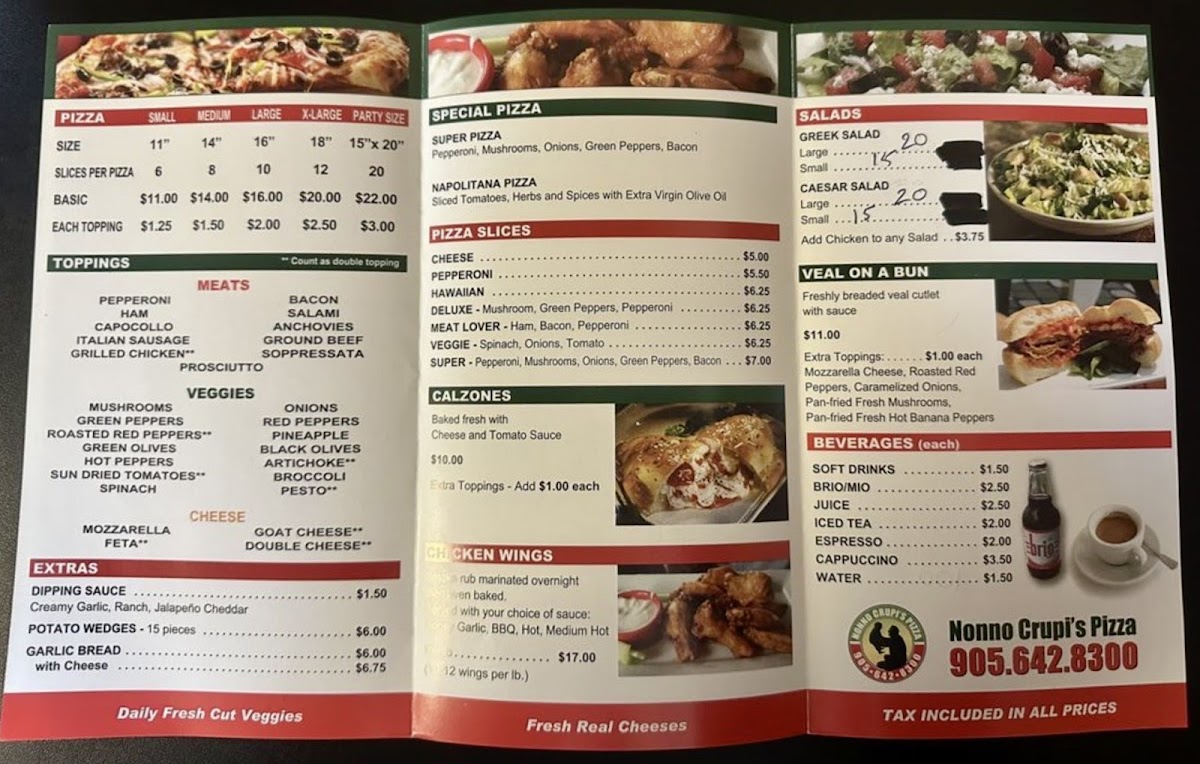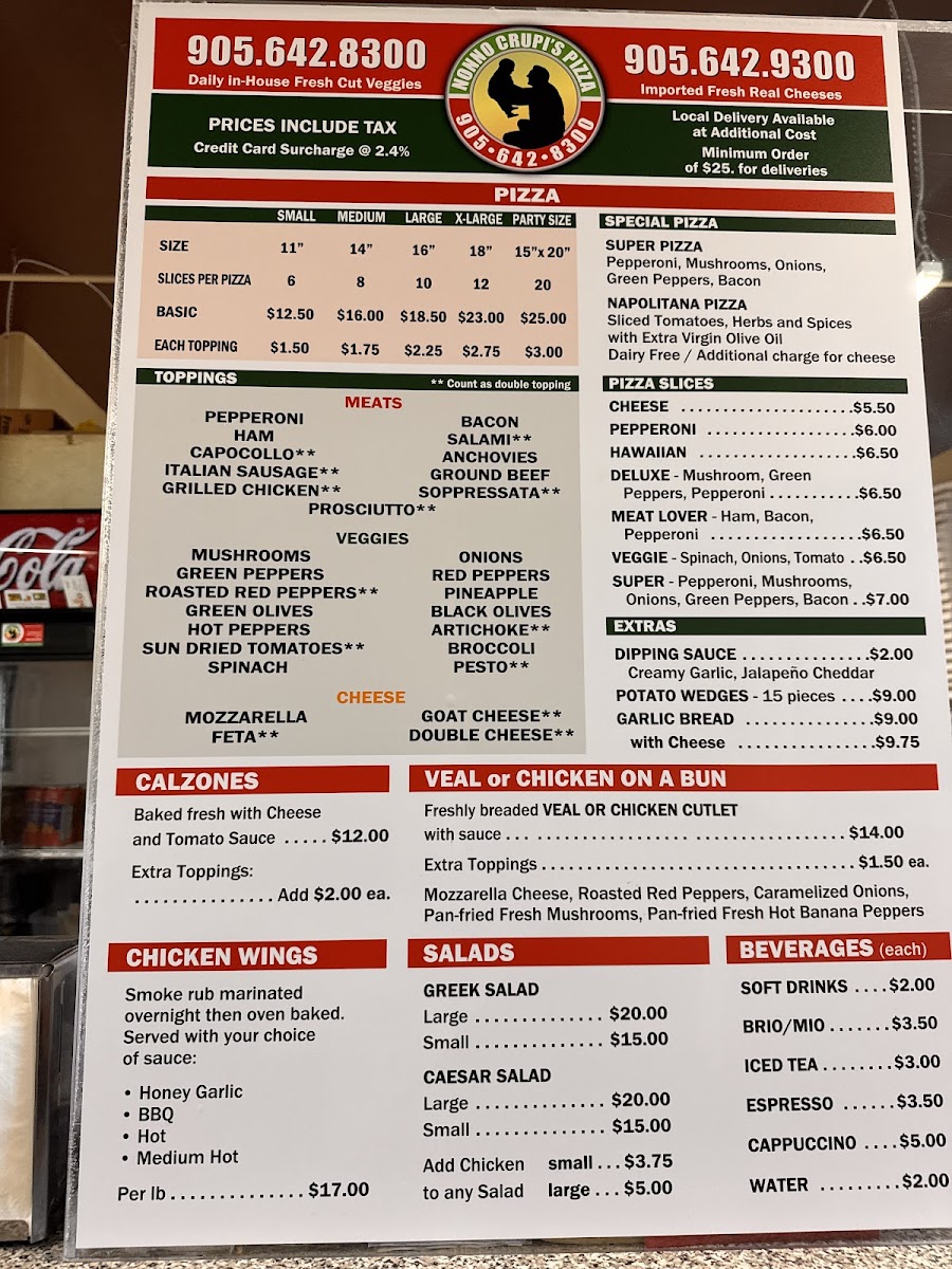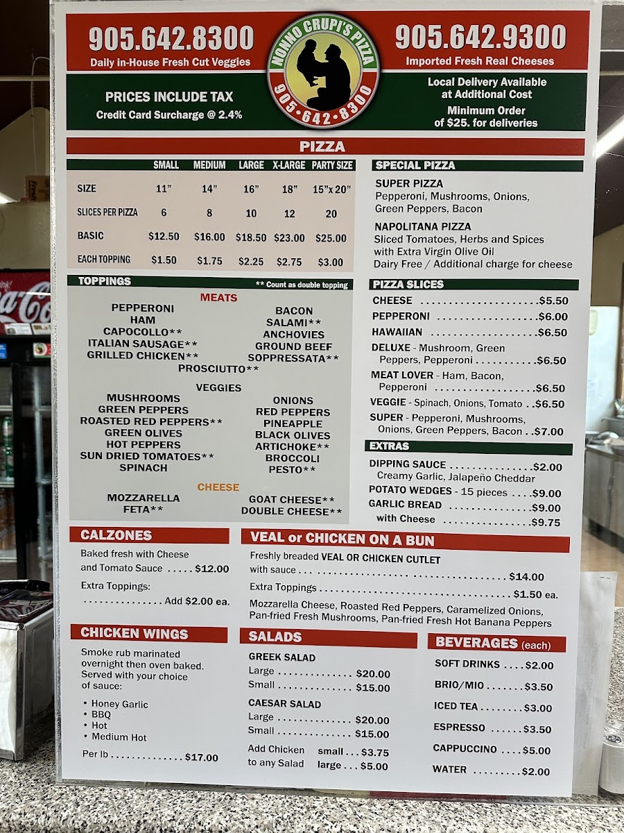 Nonno Crupi's Pizza Menu